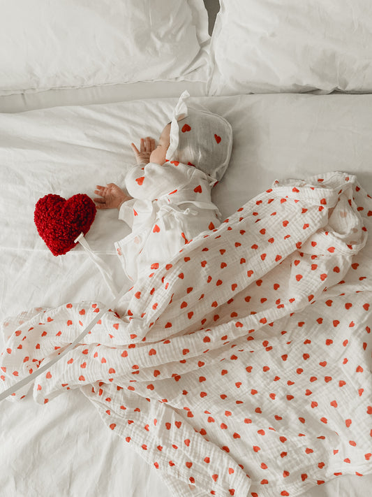 Rode hartjes | Organic Mousseline Newborn set | 5-delig