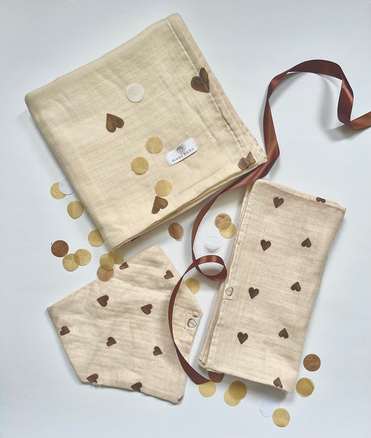 Hydrofiele doek Bruine Hartjes | 100% Biologisch katoen | 100x100cm