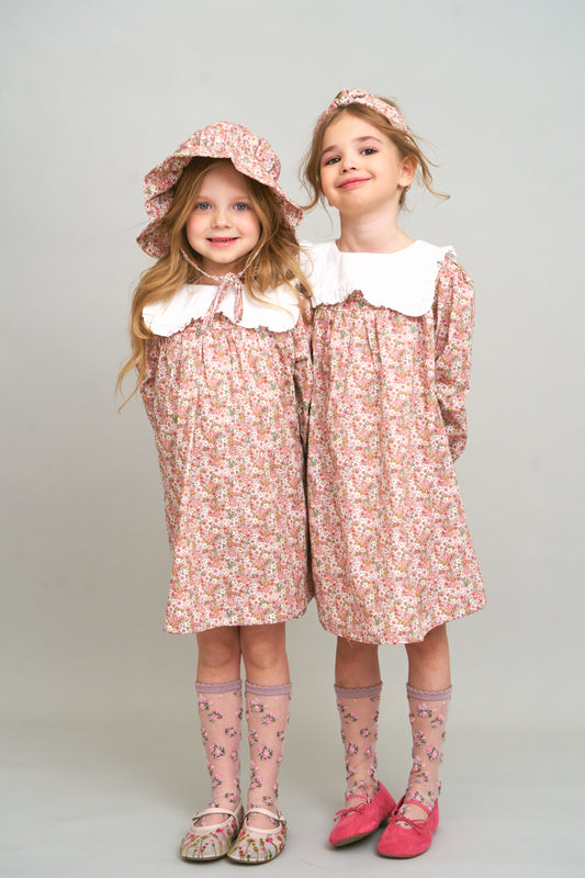UitverkochtMeisjes bloemen jurk met witte kraag