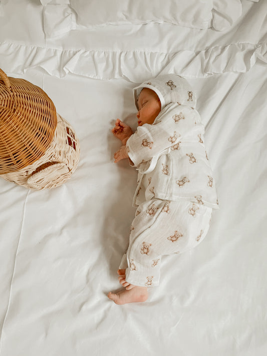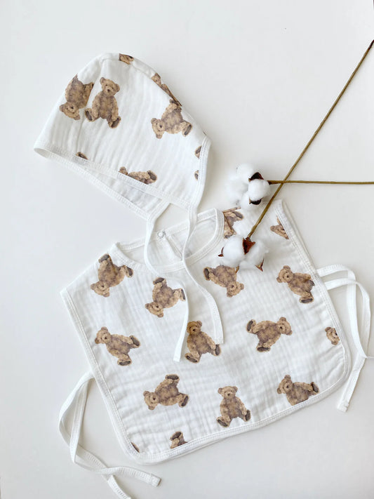 Teddybear Slabbetje & Bonnet | Organic Muslin