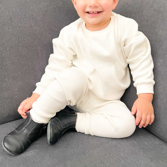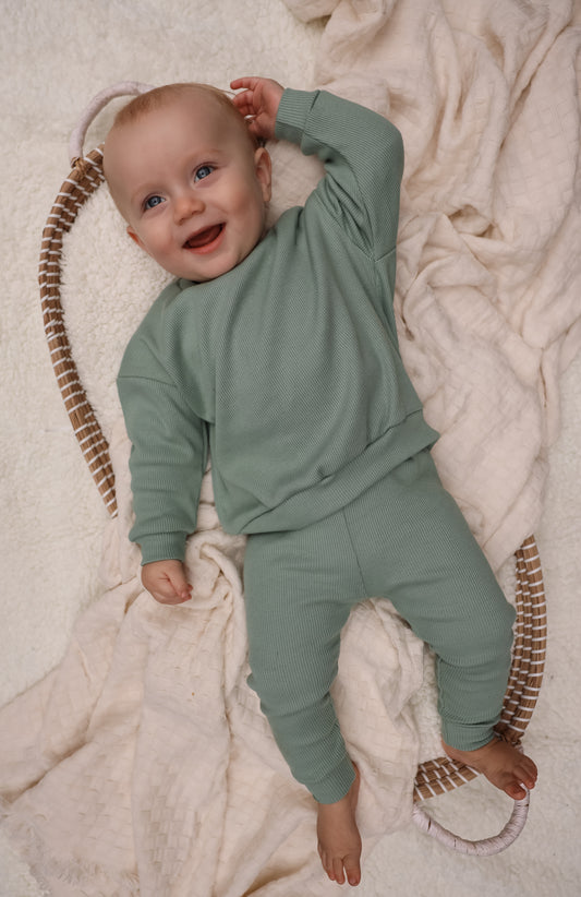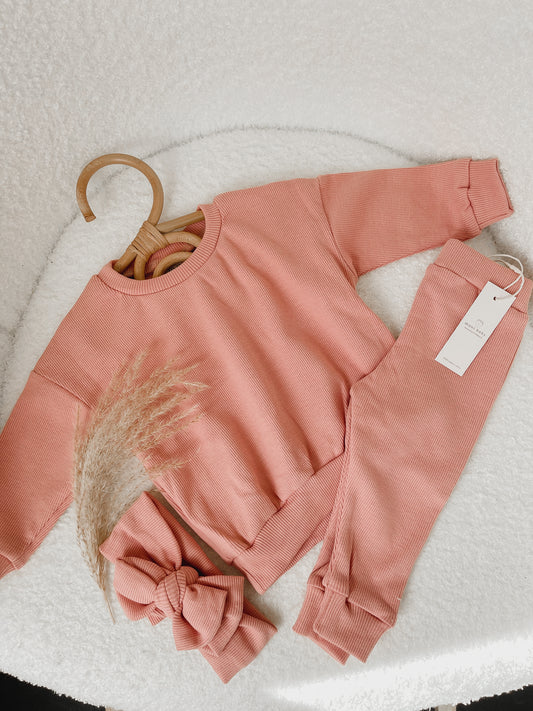 UitverkochtRoze katoenen geribde set | Sweater met broekje