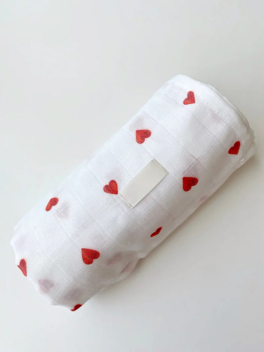 Hydrofiele doek Rode Hartjes | 100% Biologisch katoen | 100x100cm