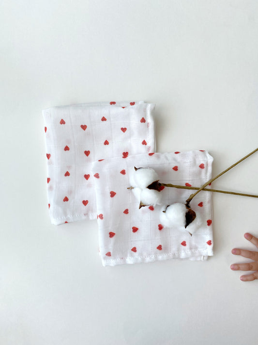 Hydrofiele monddoekjes Hartjes | 2 stuks | 27x27cm