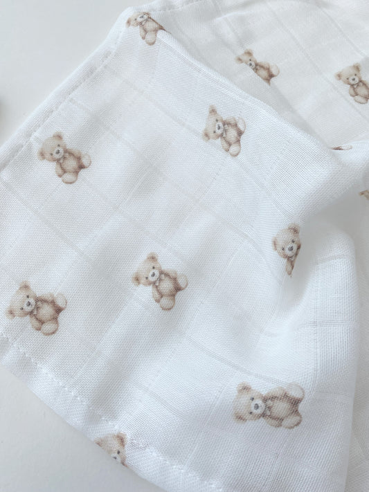 Hydrofiele monddoekjes Teddy bear | 30x30cm | Organic muslin