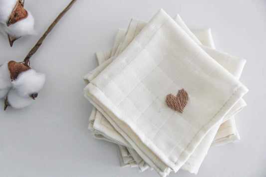 Handmade Hydrofiele monddoekjes hartjes | 5 stuks | 22x22cm