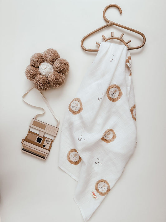 Hydrofiele doek Leeuw | 100% Biologisch katoen | 100x100cm