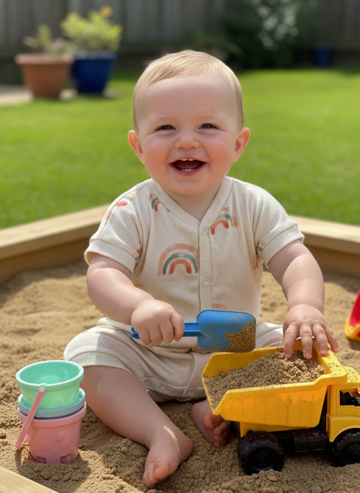 Wir präsentieren den süßen Kurzarm-Playsuit mit bezauberndem Regenbogen-Print! Dieser bequeme und trendige Spielanzug ist perfekt für kleine Träumer. Aus weichem und atmungsaktivem Material gefertigt, bietet es optimale Bewegungsfreiheit und Komfort. Der verspielte Regenbogendruck verleiht dem Outfit Ihres Kleinen eine magische und farbenfrohe Note. Mit praktischen Druckknöpfen vorne und im Schritt lässt er sich leicht an- und ausziehen, was den Eltern großen Komfort bietet. Dieser stilvolle und praktische Babystrampler ist ein absolutes Muss für die Garderobe jedes Babys!
