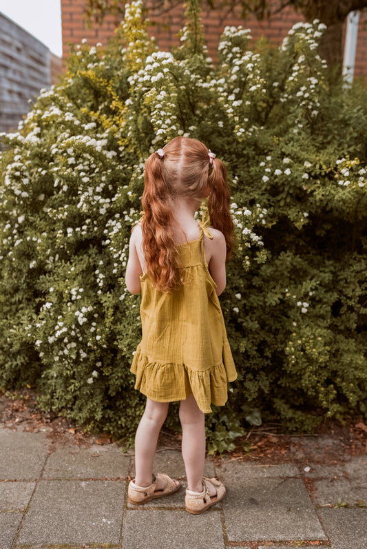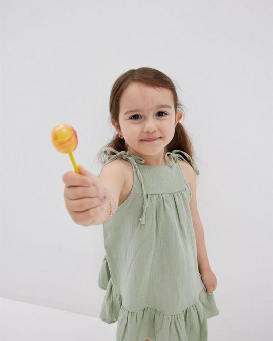Meisjes - Crème tweedelige set van katoenen mousseline