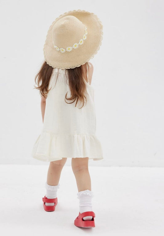 Neutrale bruine set | T-shirt en short van katoenen mousseline met zomerse hoed