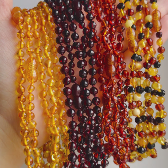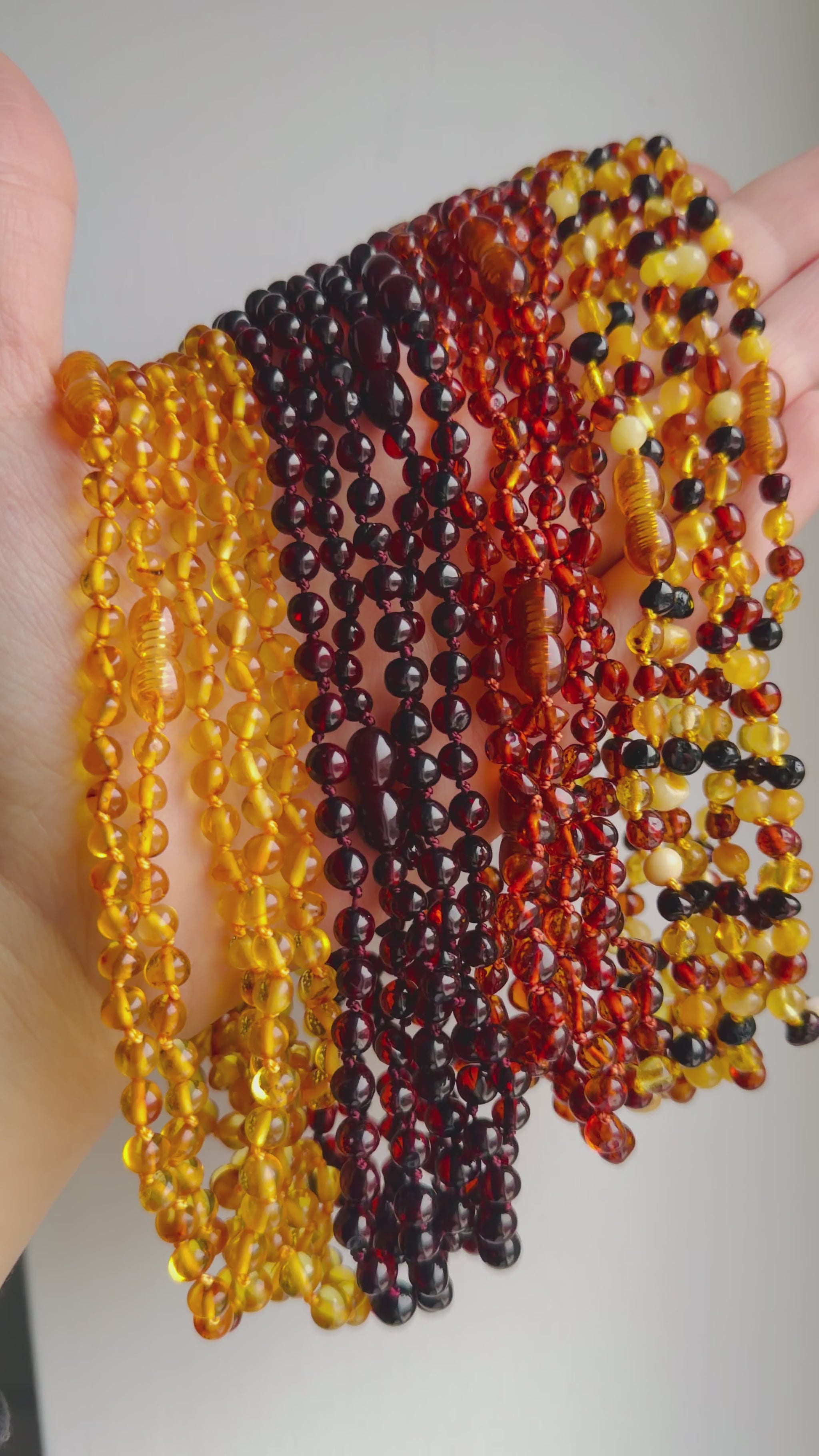 Laat jouw kleintje stralen met deze prachtige gecertificeerde barnsteen ketting in warme kleurrijke mix. Gemaakt van 100% echte Baltische barnsteen, bekend om zijn natuurlijke verzachtende eigenschappen bij het doorkomen van tandjes. Deze ketting is met de hand geknoopt, waarbij elke kraal afzonderlijk is vastgemaakt voor maximale veiligheid. Elke kraal is uniek en hierdoor is elke ketting/armband anders.